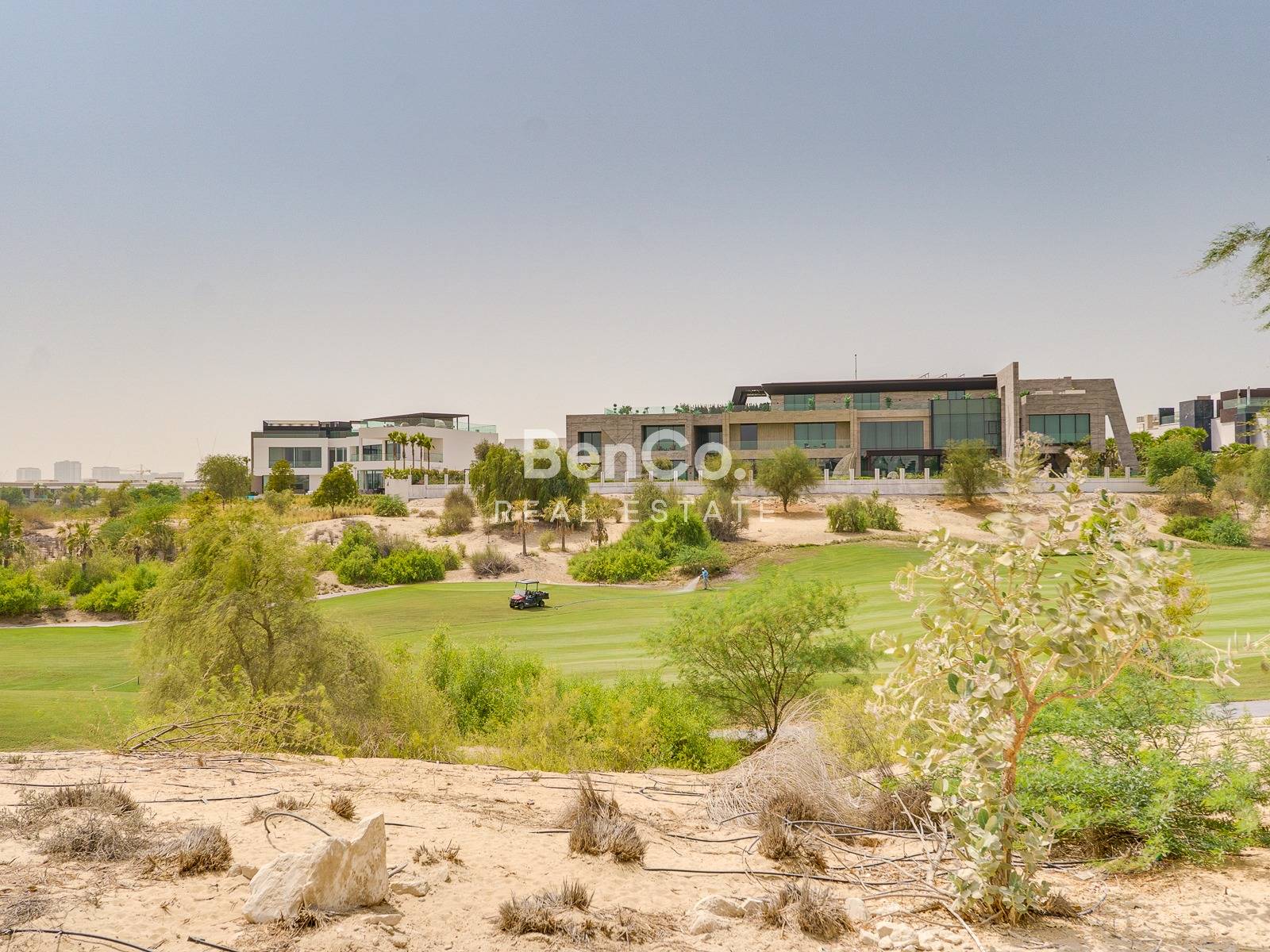 The villa spans a ground floor, first floor, and a rooftop terrace, complete with a private powder room and pantry, while offering panoramic views of the Dubai Skyline and the Dubai Hills Golf Course.